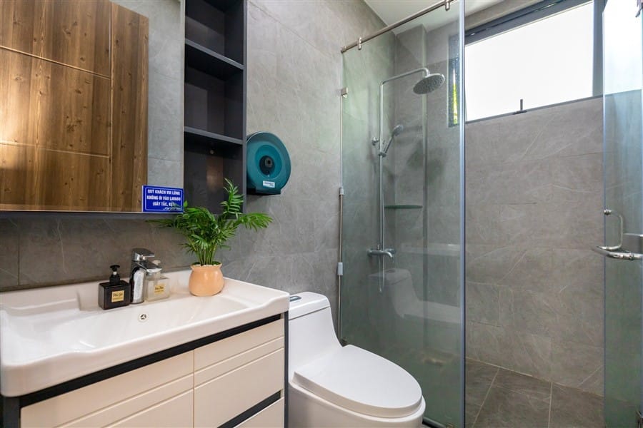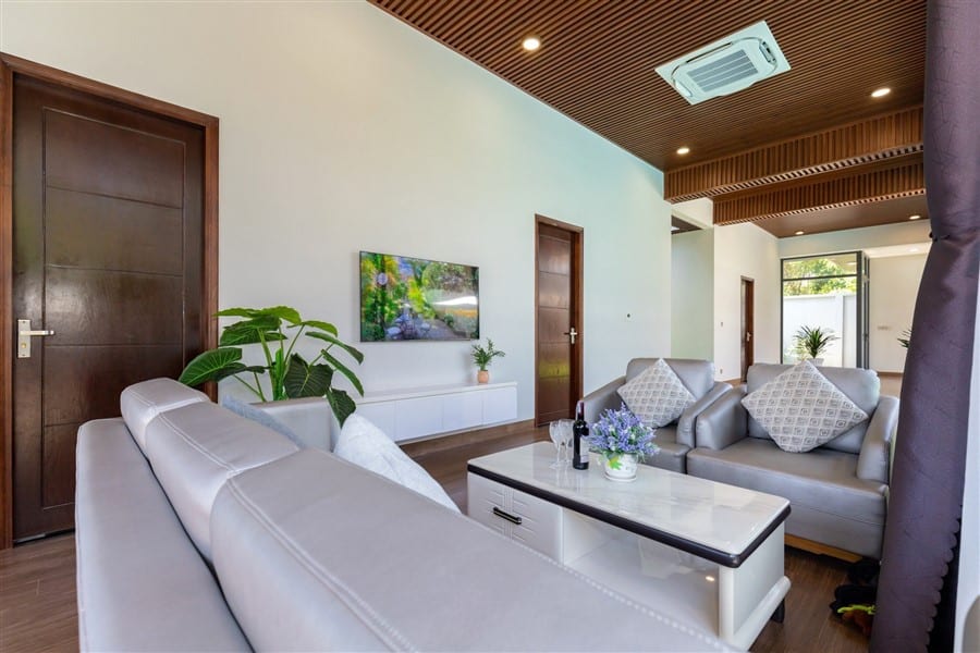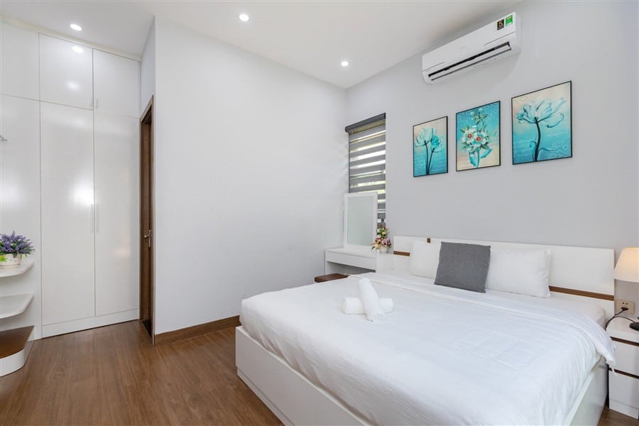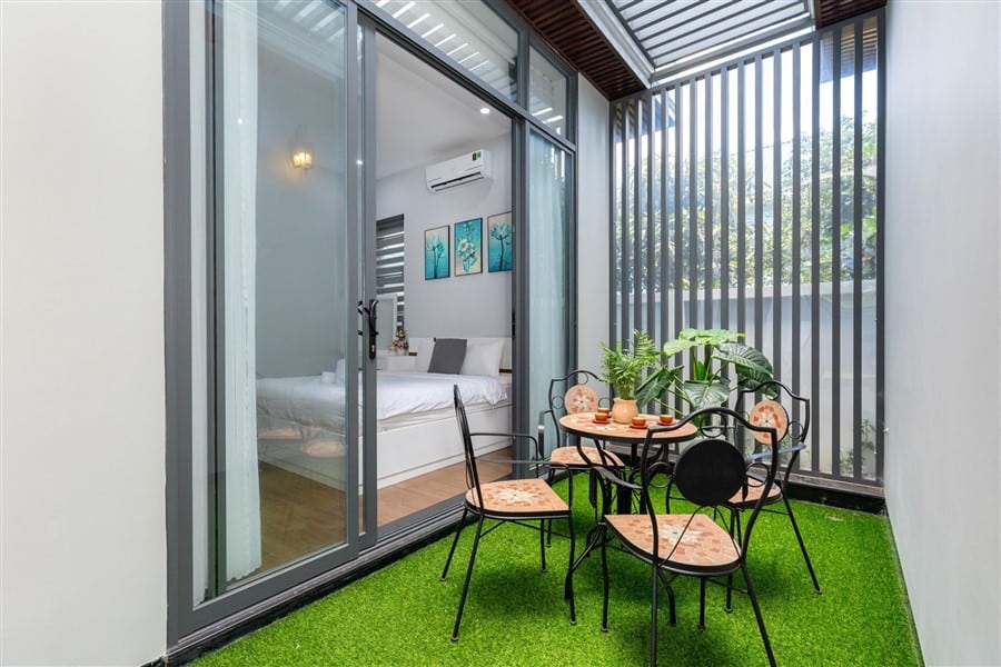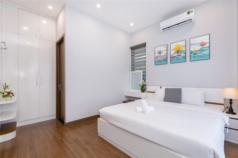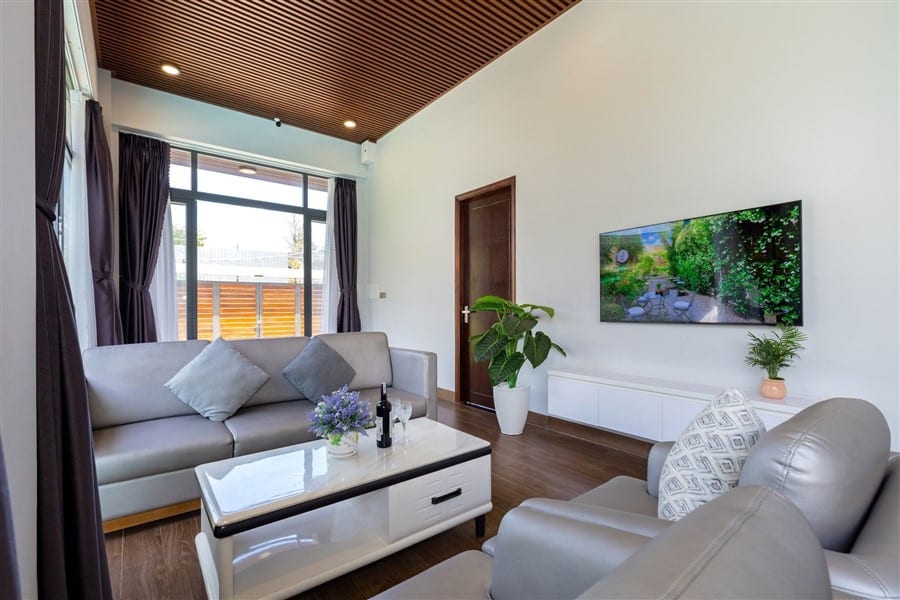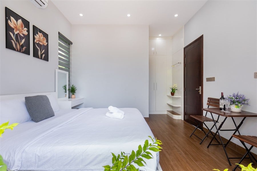 - Phòng Ngủ 1-3: Mỗi phòng có 1 giường đôi lớn, điều hòa 2 chiều, tủ quần áo, bàn trang điểm, WC khép kín, view sân vườn hoặc ban công