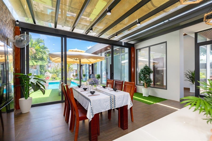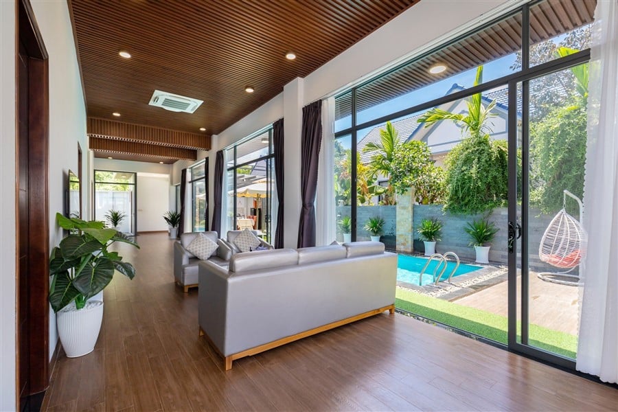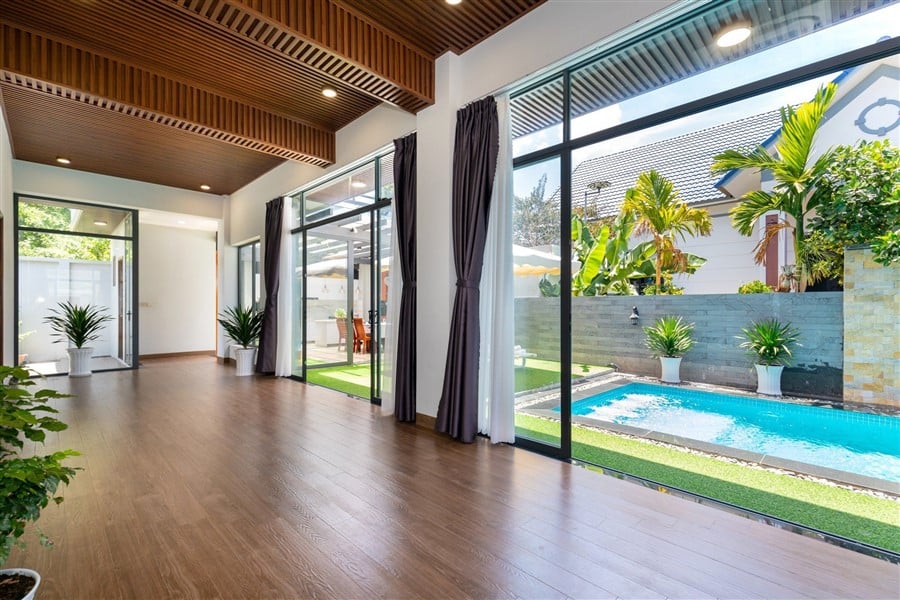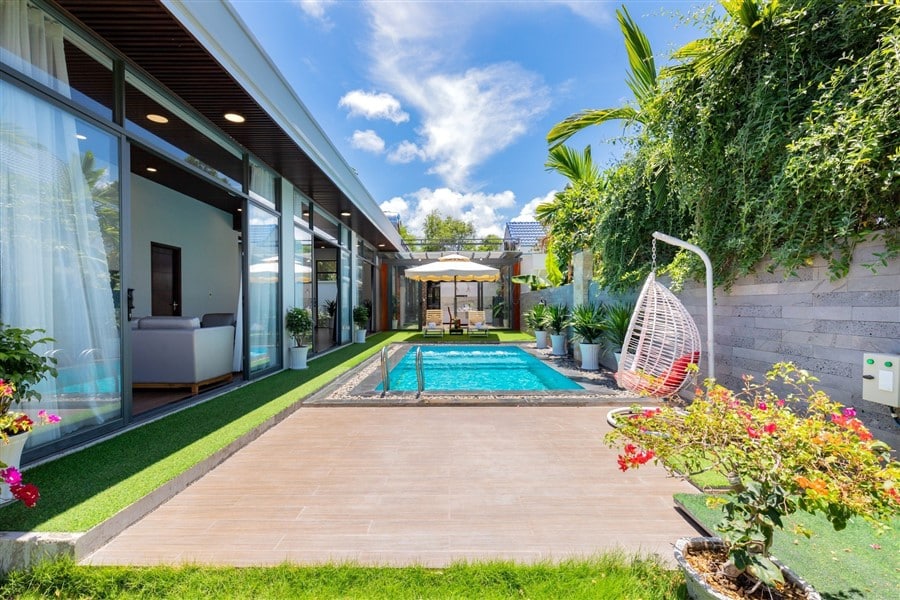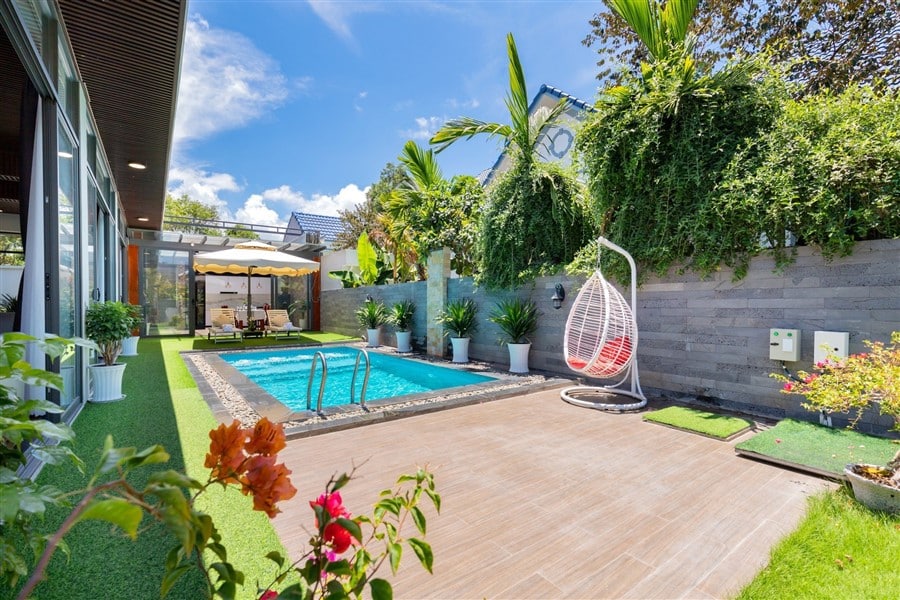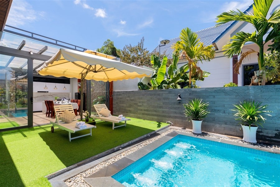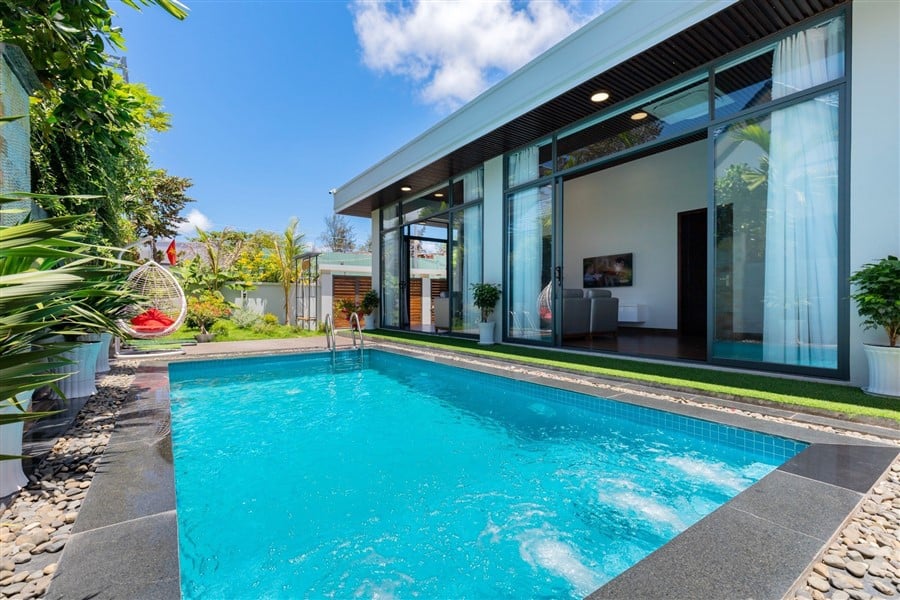 Với 3 phòng ngủ rộng rãi, villa này có thể chứa tối đa 16 người, phù hợp cho cả nhóm bạn lớn hoặc gia đình đông thành viên. Ngoài ra, biệt thự còn có hồ bơi riêng, tạo không gian lý tưởng để thư giãn và giải trí ngay tại chỗ.