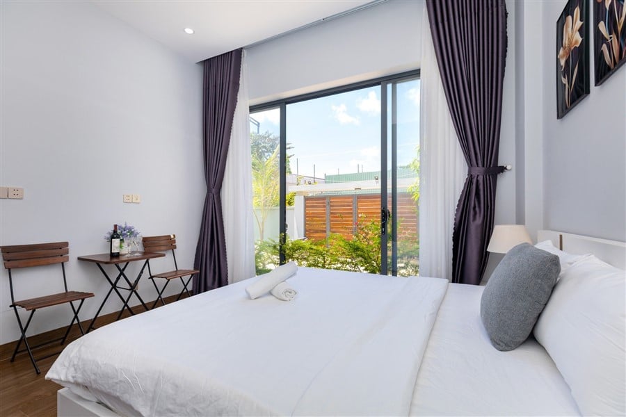 - Diện Tích: 500m2, phòng ngủ thiết kế 2 cửa thông thoáng với vườn