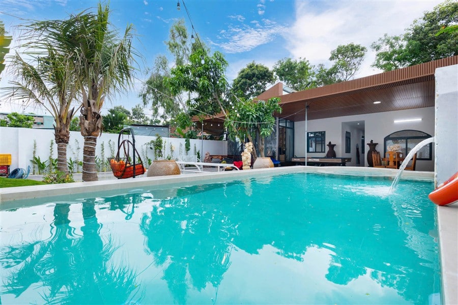 Không gian nghỉ dưỡng sang trọng, hồ bơi riêng, sân BBQ rộng,
