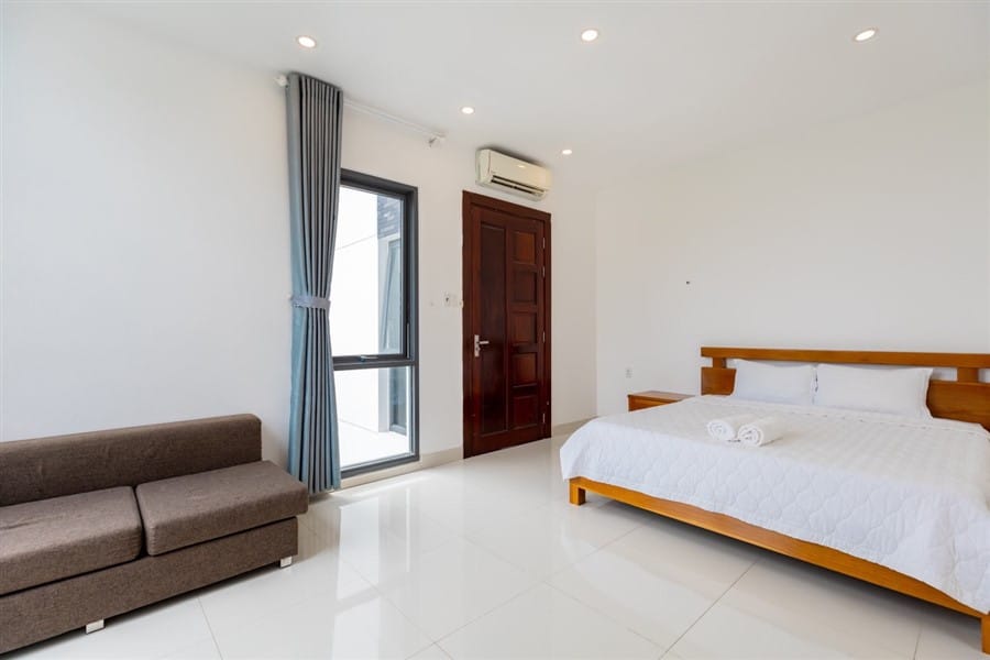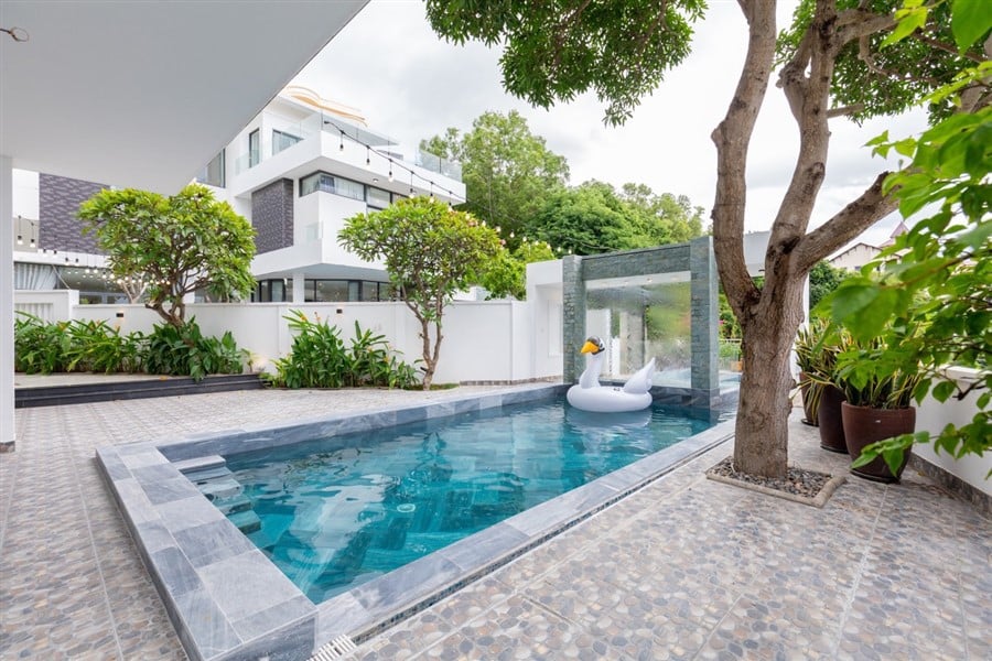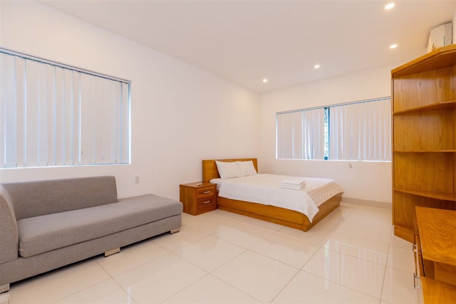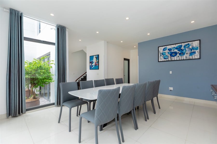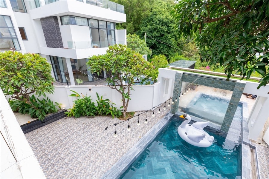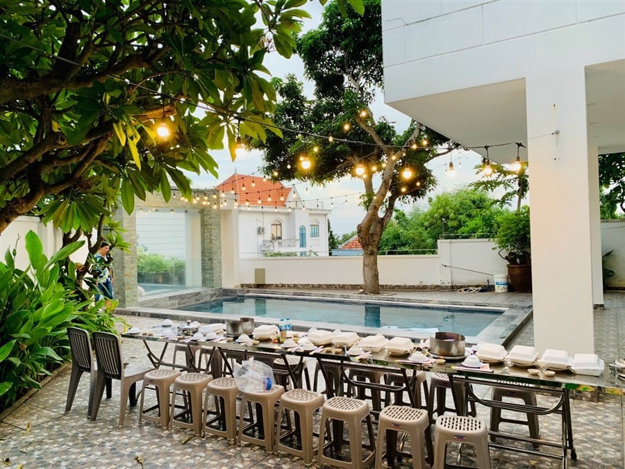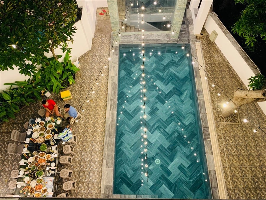 Villa 42/5A Trần Phú có tổng cộng 6 phòng ngủ và 8 phòng vệ sinh, phục vụ đến 20 khách. Với hồ bơi rộng 50m2 và sân vườn lớn, đây là không gian lý tưởng để tổ chức các buổi tiệc nướng BBQ ngoài trời hoặc các hoạt động giải trí khác.