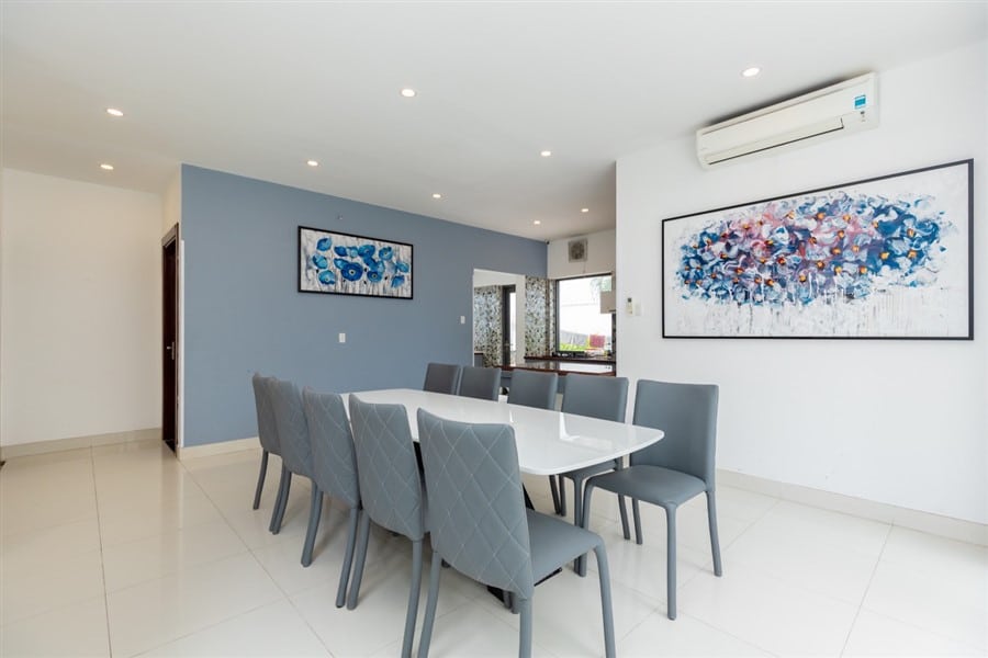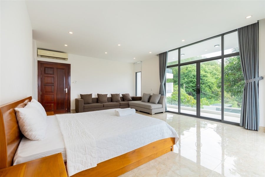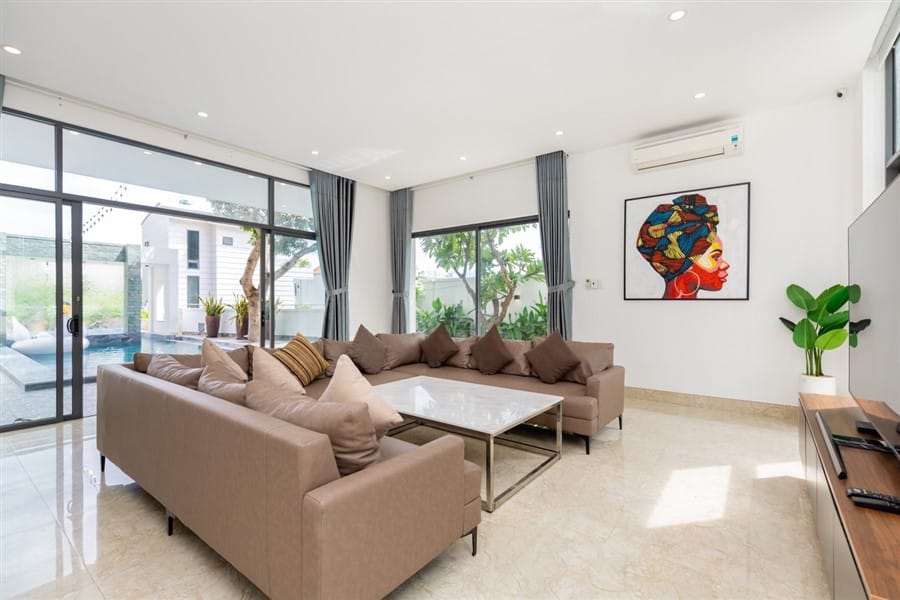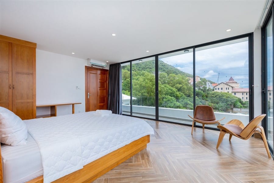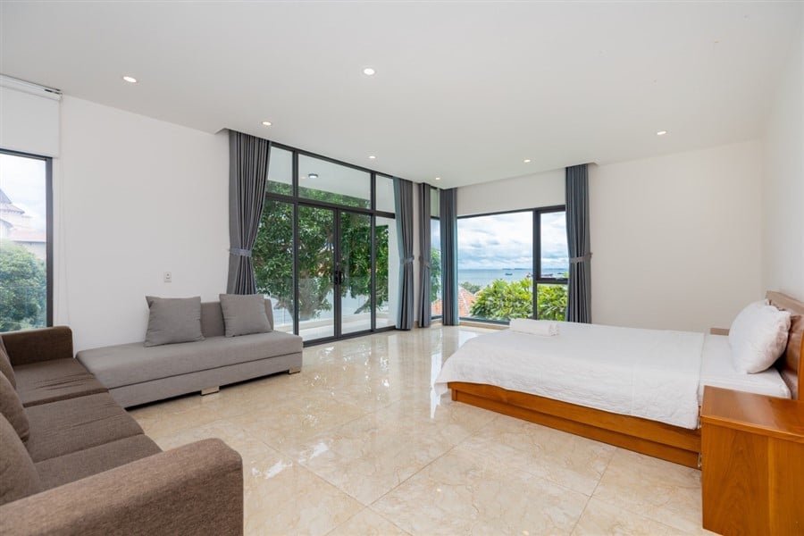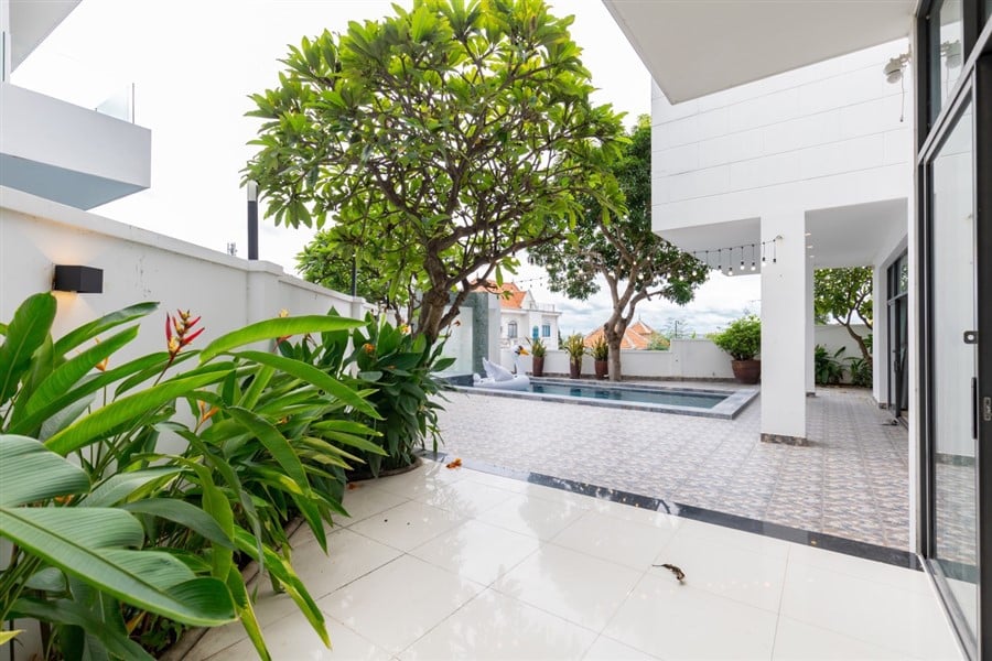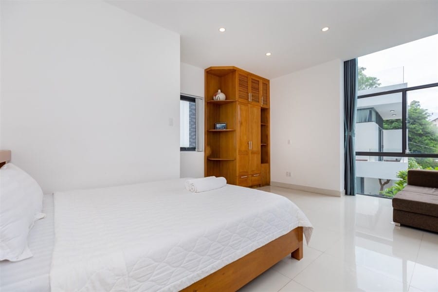 Villa 42/5A Trần Phú có tổng cộng 6 phòng ngủ và 8 phòng vệ sinh, phục vụ đến 20 khách. Với hồ bơi rộng 50m2 và sân vườn lớn, đây là không gian lý tưởng để tổ chức các buổi tiệc nướng BBQ ngoài trời hoặc các hoạt động giải trí khác.