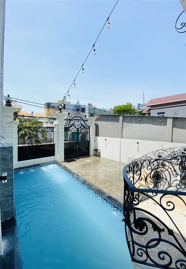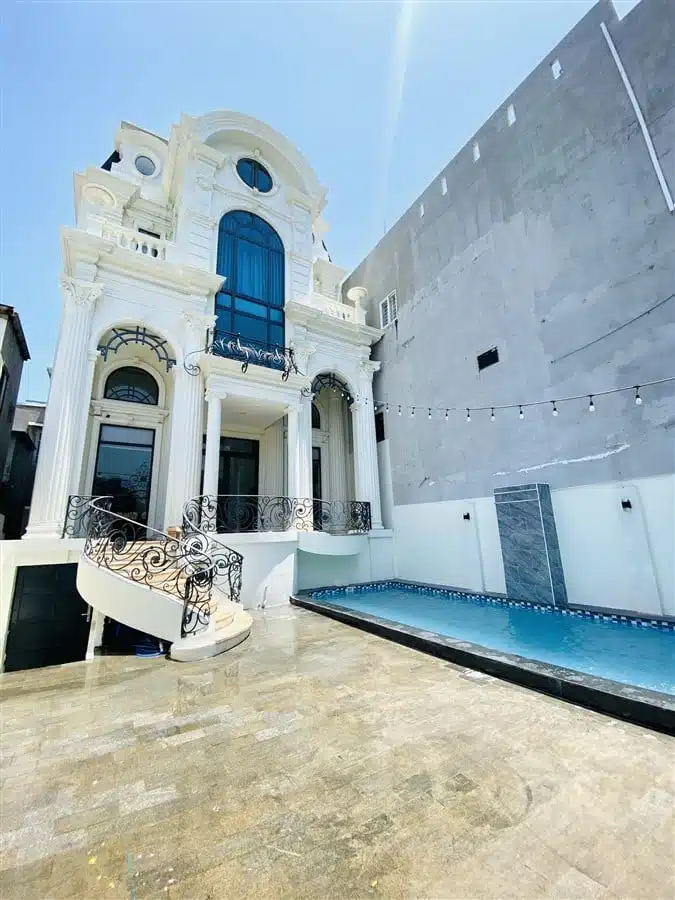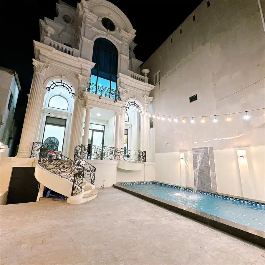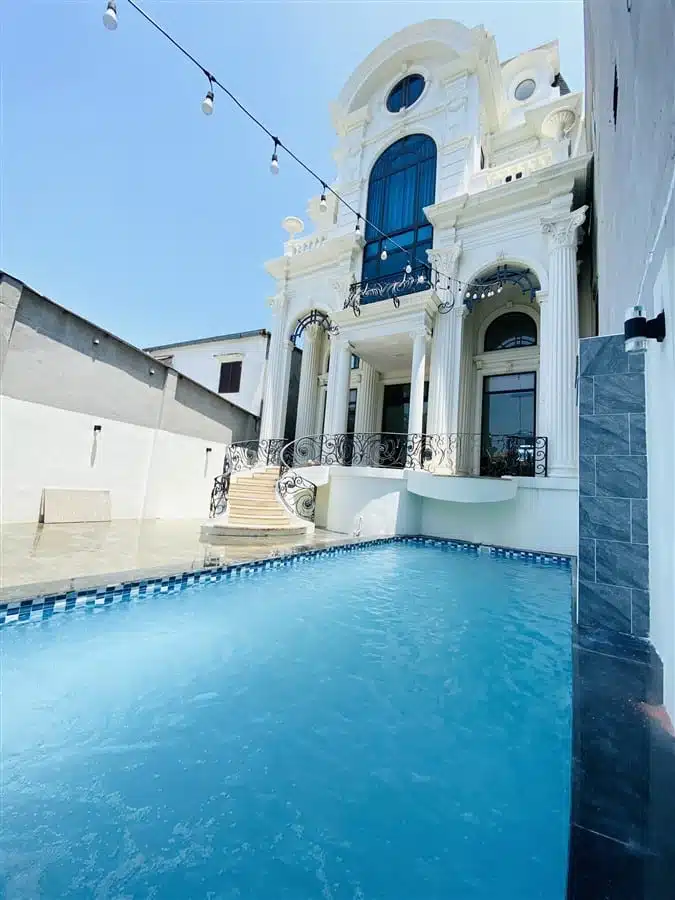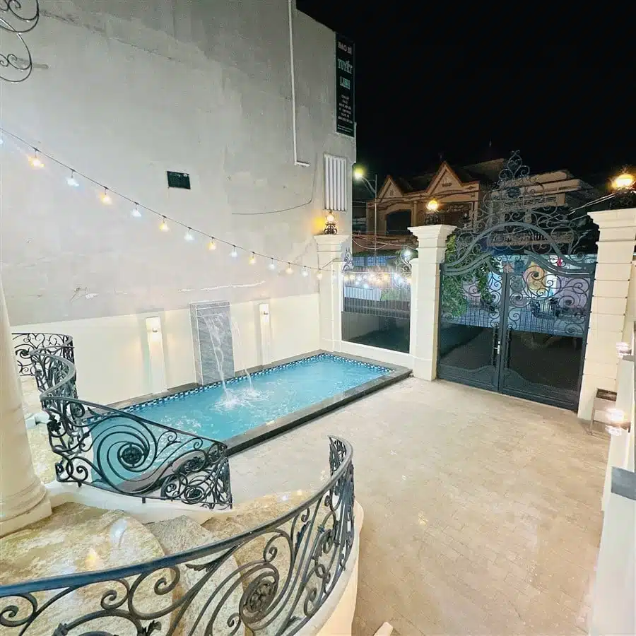 Biệt thự được trang bị hồ bơi riêng có diện tích 35m2, là nơi lý tưởng để khách hàng thư giãn và tận hưởng không gian vui chơi ngoài trời. Ngoài ra, Villa còn có sẵn dàn karaoke, khu vực BBQ và ghế massage, mang đến những tiện nghi giải trí và thư giãn tuyệt vời cho khách hàng. Chỗ đậu xe ô tô trong nhà cũng được bố trí để đảm bảo tiện lợi cho việc di chuyển và lưu trữ phương tiện.