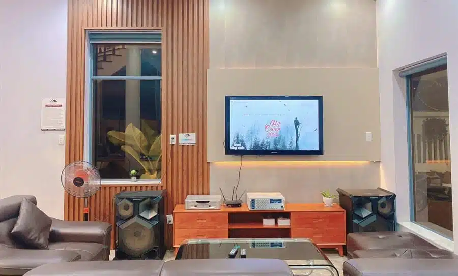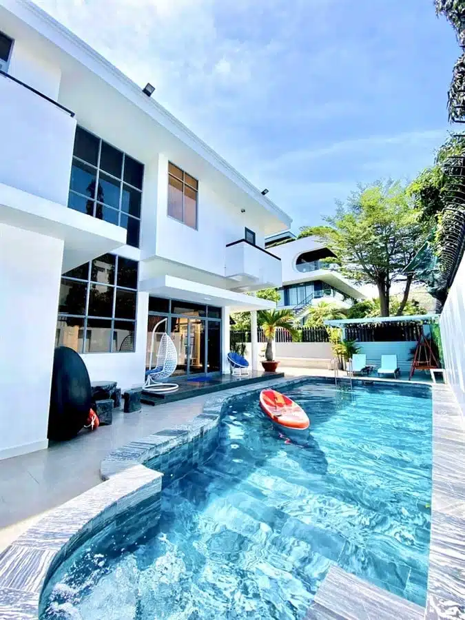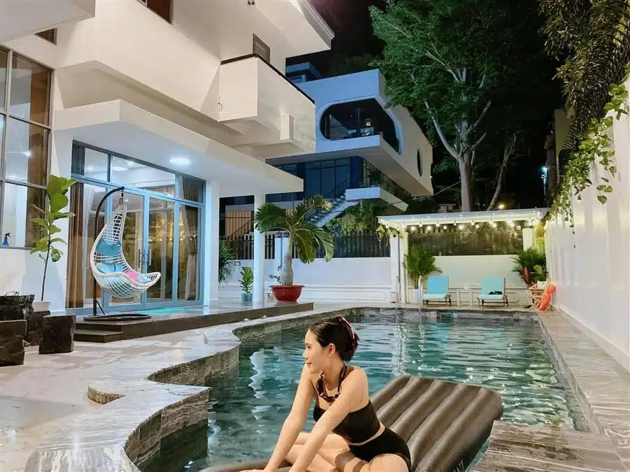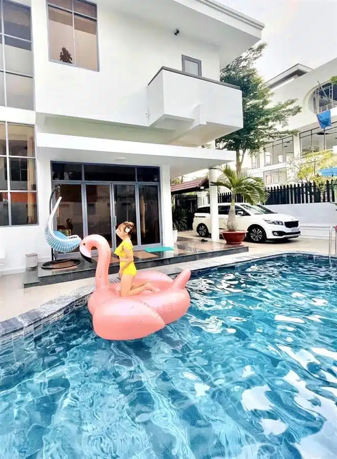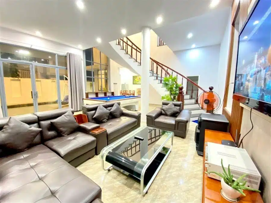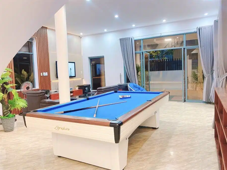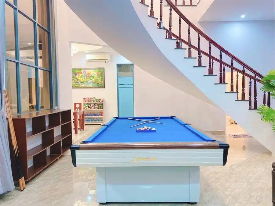 Với diện tích hồ bơi rộng 60m2 và sân vườn lớn 200m2 kết hợp với khu vực BBQ, đây là không gian lý tưởng để bạn thư giãn, tổ chức tiệc ngoài trời và thưởng thức không gian xanh mát. Ngoài ra, Villa còn trang bị dàn karaoke, bàn bida lỗ, 2 ghế massage và loa xịn, mang lại những trải nghiệm giải trí đáng nhớ cho khách hàng.