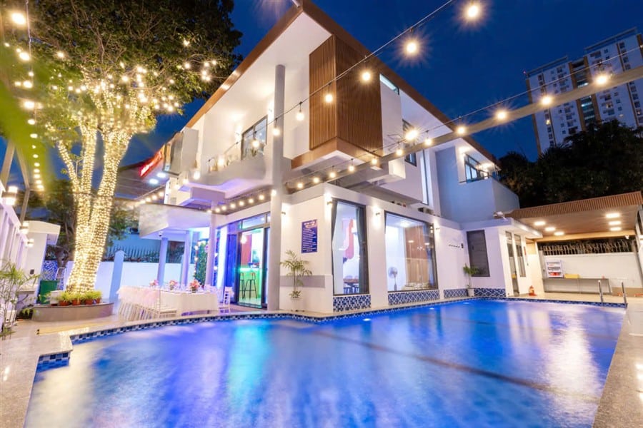 • Tầng trệt: 3 phòng ngủ (1 phòng 1 giường, 2 phòng 2 giường), phòng khách có karaoke, sân vườn BBQ