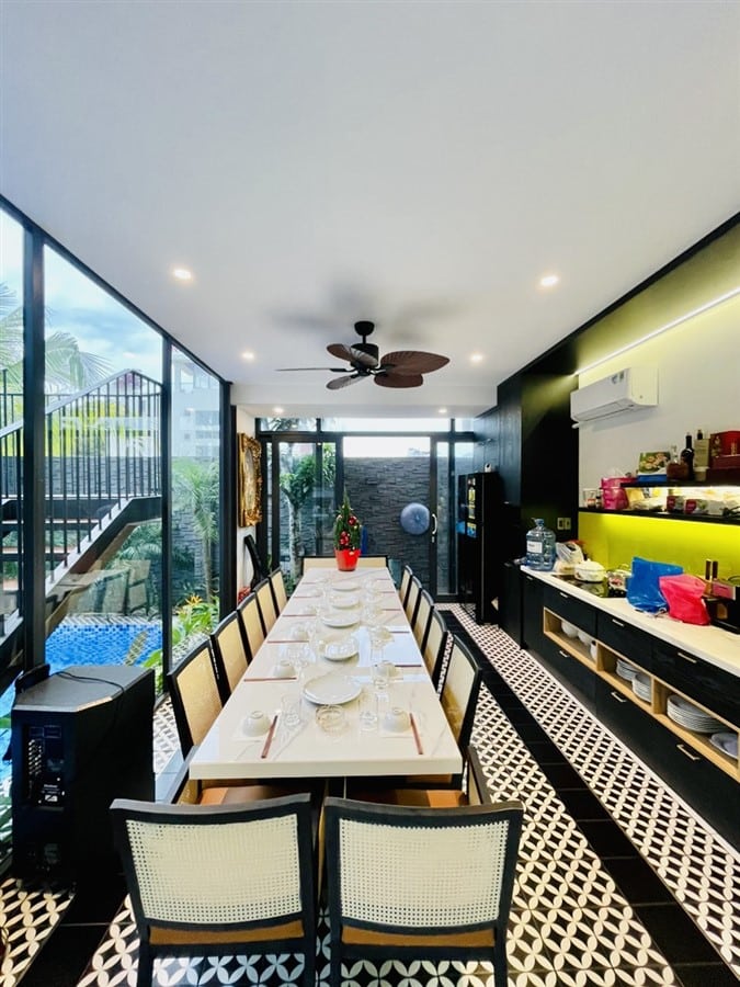 • Bếp có bàn ăn dài và 14 ghế ăn