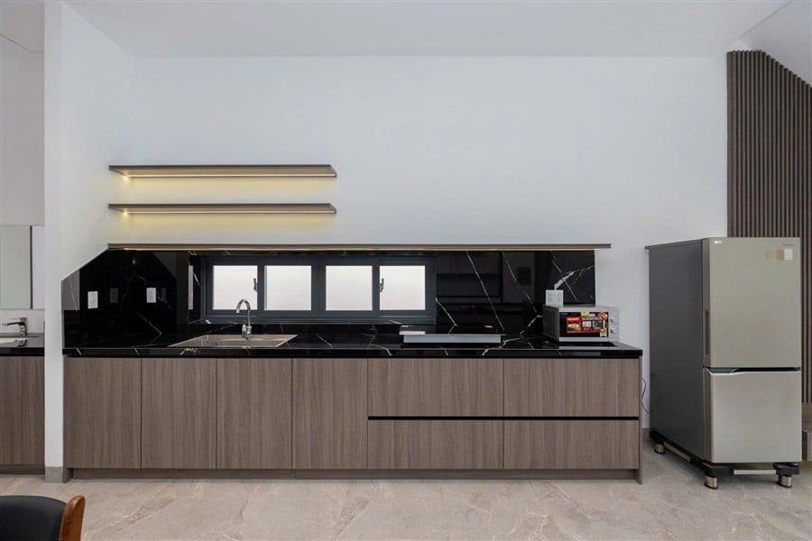Bếp được trang bị đầy đủ: bếp gas, bếp nướng BBQ, lò vi sóng, tủ lạnh, nồi, chén dĩa, dụng cụ nấu ăn và gia vị cơ bản. Villa còn trang bị máy giặt, phòng khách rộng rãi với sofa sang trọng, chăn ga gối tiêu chuẩn khách sạn, quản gia hỗ trợ 24/7 và hỗ trợ check-in sớm theo tình hình thực tế, đảm bảo khách hàng có trải nghiệm thoải mái và tiện nghi nhất.