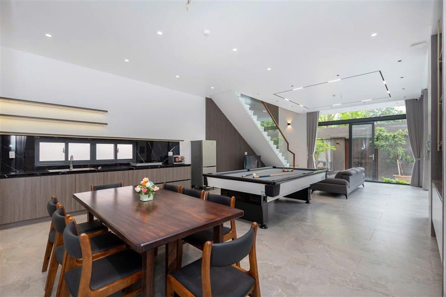 Villa mới xây, hiện đại, nội thất sang trọng, tiện nghi đầy đủ, phù hợp gia đình hoặc nhóm đông
