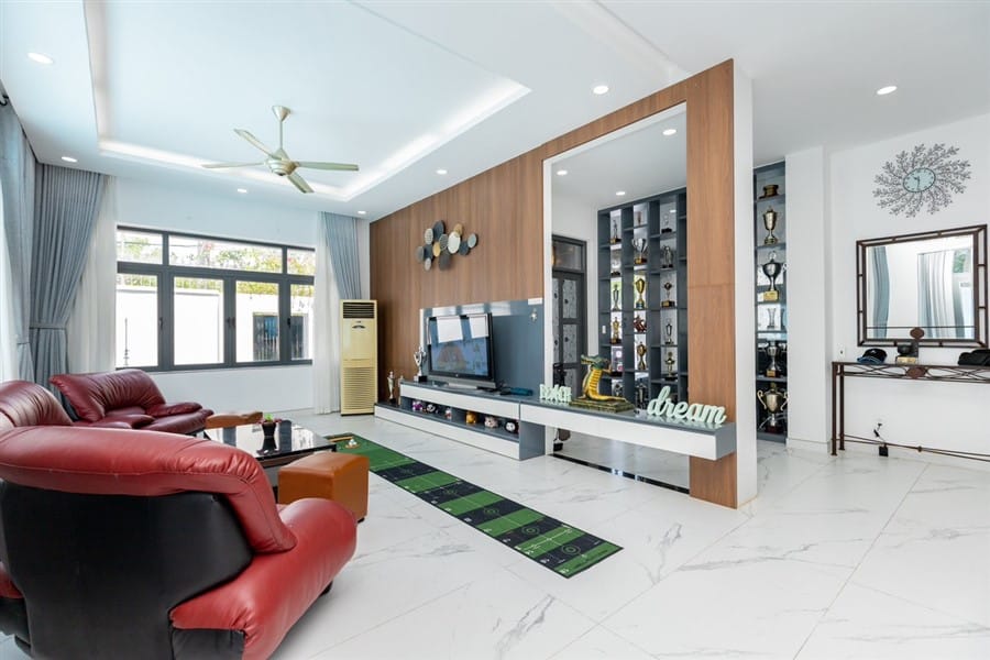 Villa B1.25 Thùy Dương 3 được trang bị đầy đủ các tiện nghi hiện đại và sang trọng như hồ bơi rộng 45m², phòng karaoke tiện nghi với màn hình 55 inch và sân đậu xe cho đến 4 chiếc ôtô loại 4-7 chỗ. Đây là không gian lý tưởng cho các hoạt động giải trí và nghỉ dưỡng của khách hàng.