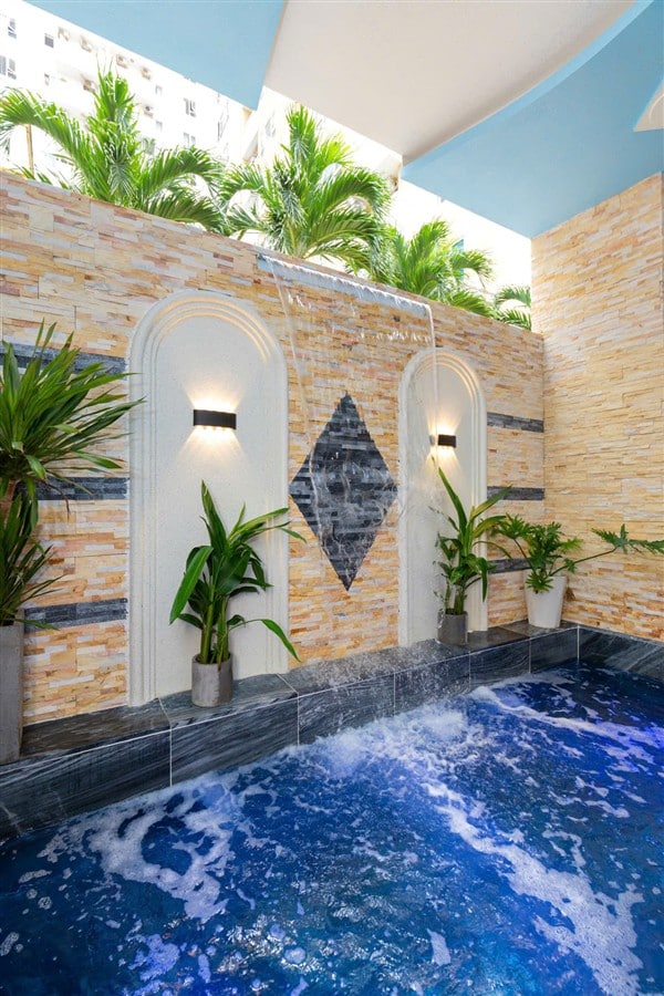 Hồ bơi 24m², độ sâu 0,8–1,2m, khu vực an toàn cho trẻ em