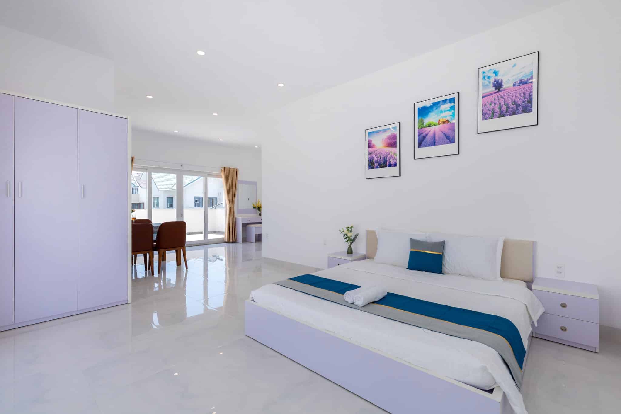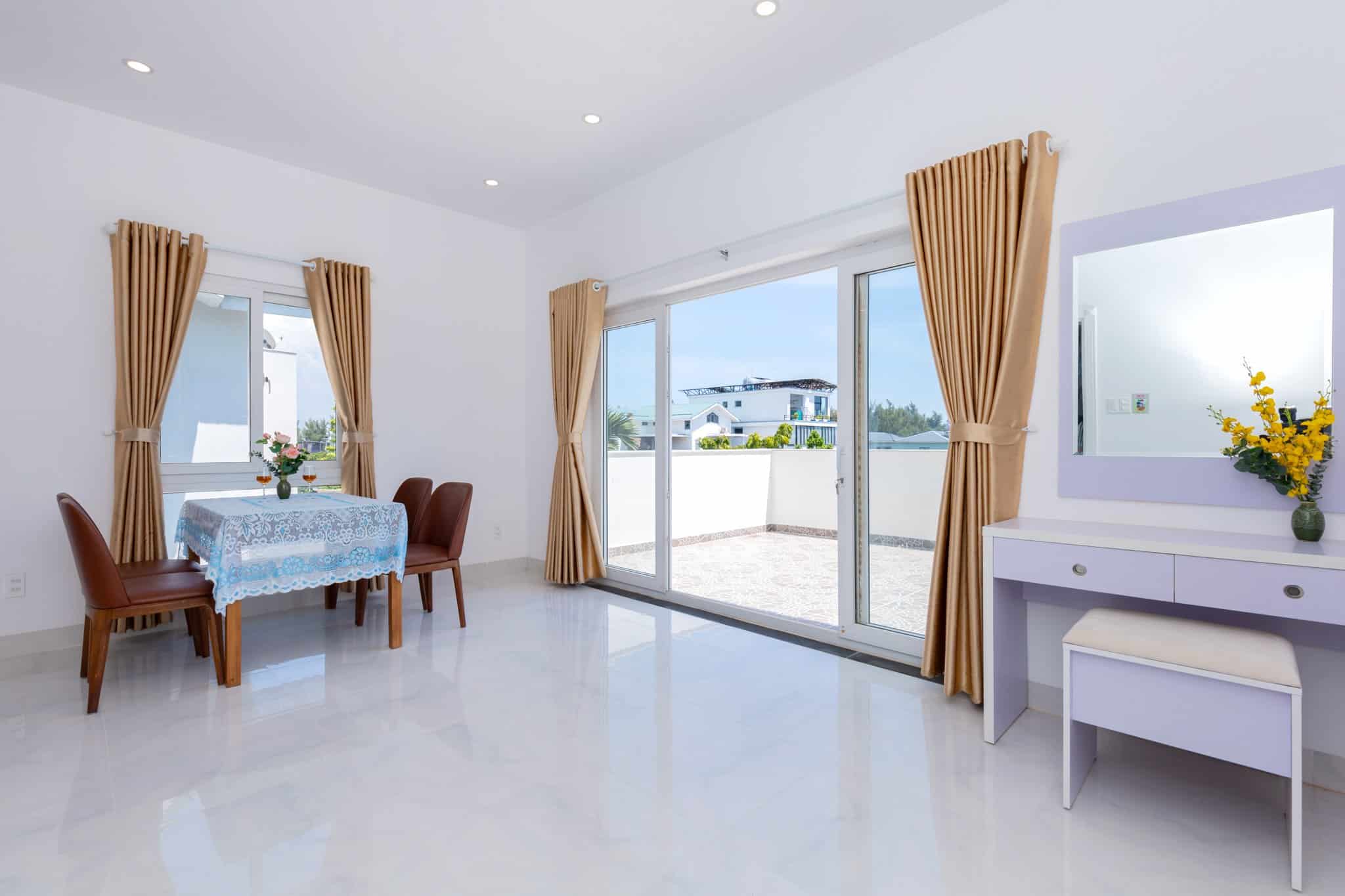 - Villa gồm có 6 phòng ngủ lớn, bao gồm 7 giường đôi và 5 nệm phụ, phục vụ tối đa từ 8 đến 30 khách.