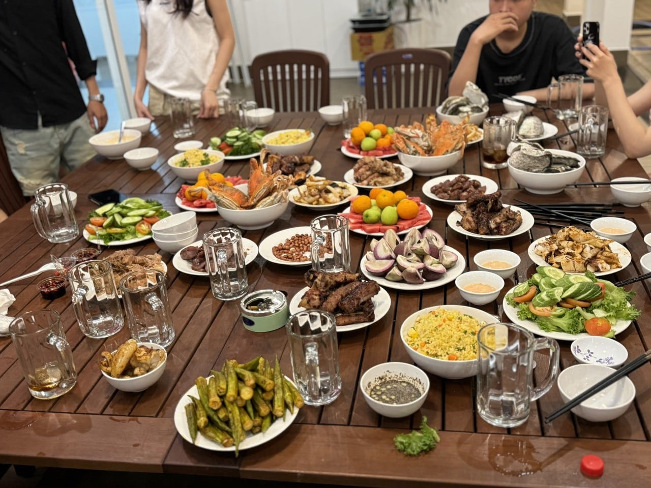 - Nhà bếp đầy đủ tiện nghi, trang bị đủ dụng cụ và gia vị, phù hợp cho việc tổ chức các bữa tiệc hoặc tự nấu nướng thoải mái.