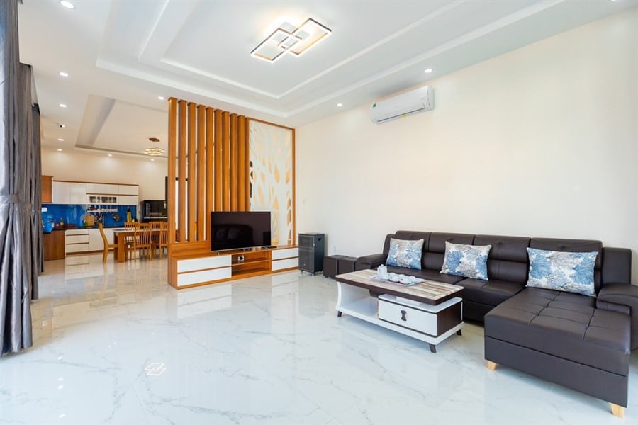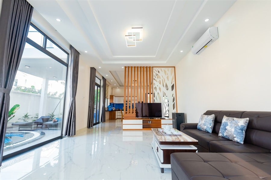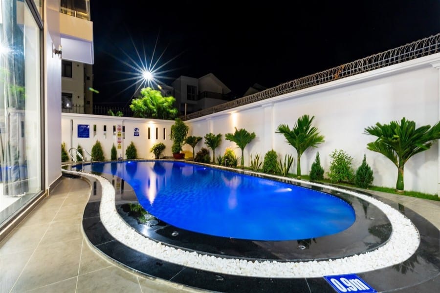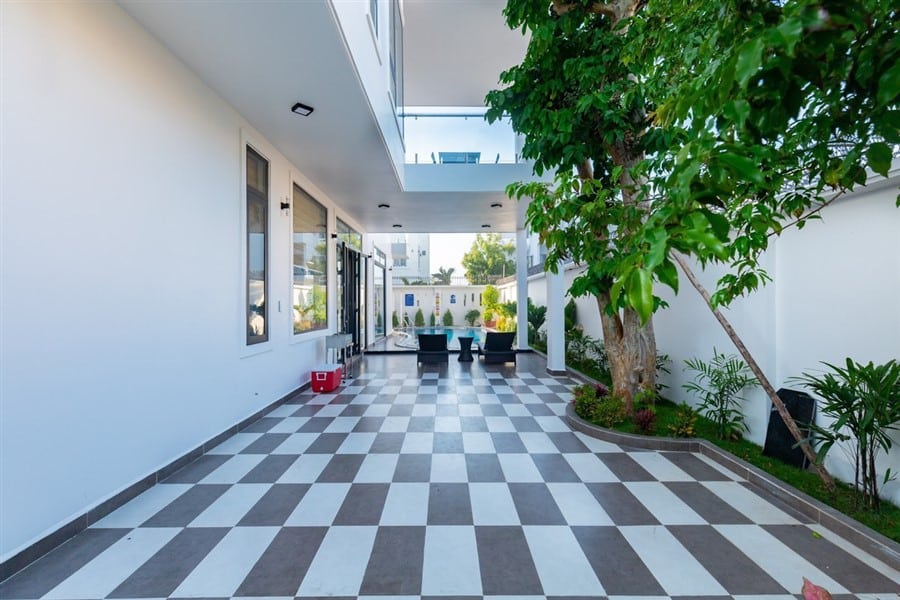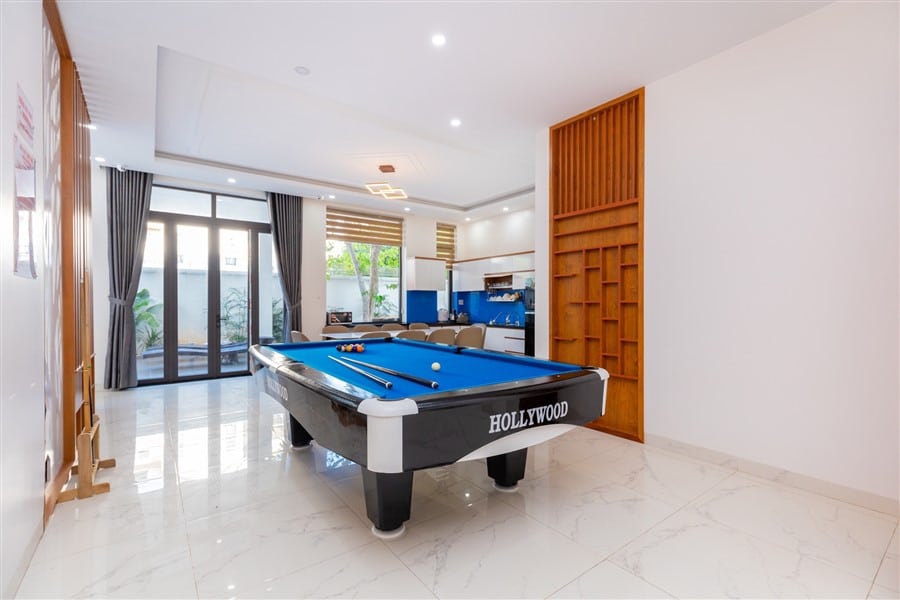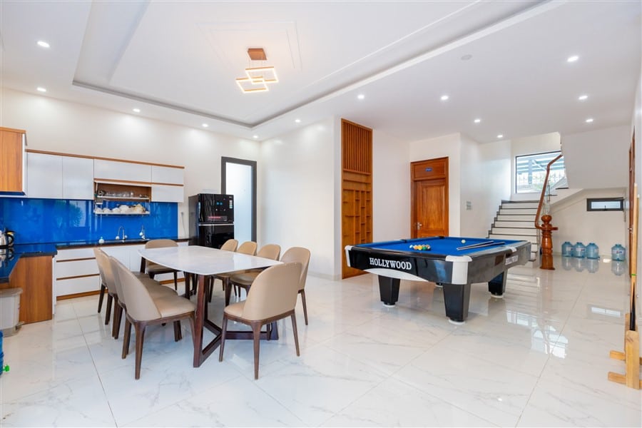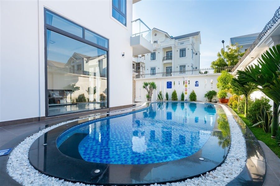 Biệt thự được thiết kế sang trọng và tiện nghi với tổng cộng 8 phòng ngủ và 9 phòng vệ sinh, trong đó có 8 phòng vệ sinh riêng biệt. Điều hòa máy lạnh được trang bị đầy đủ trong phòng khách rộng 50m2, khu vực nhà bếp tiện nghi và hồ bơi riêng có diện tích 45m2, tạo không gian tuyệt vời cho các hoạt động thư giãn và giải trí.