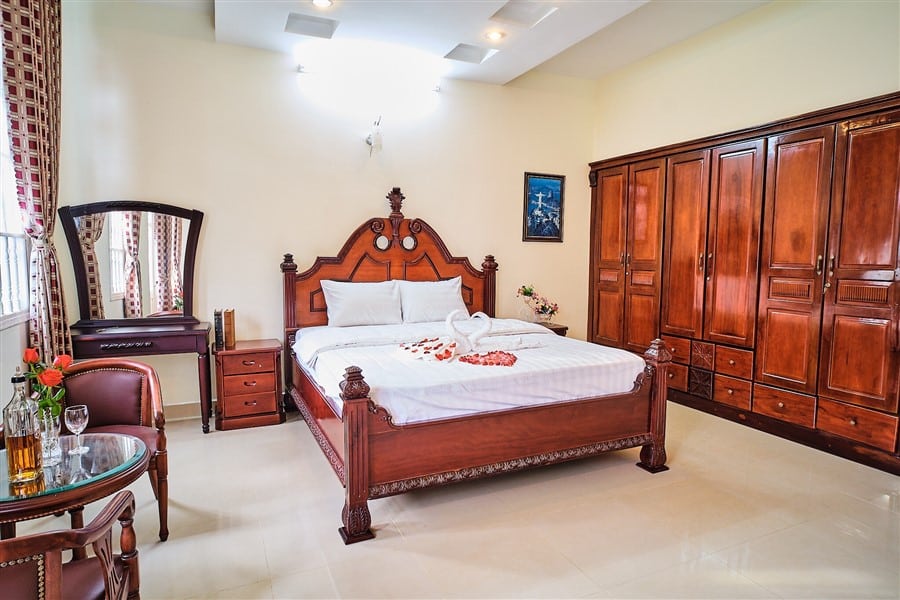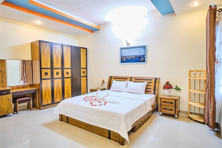 - Phòng Ngủ 1-5: Mỗi phòng đều có giường đôi lớn, điều hòa 2 chiều, tủ quần áo, và vị trí đắc địa như view nội khu.