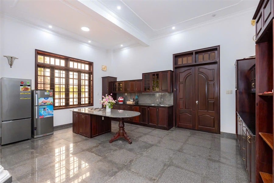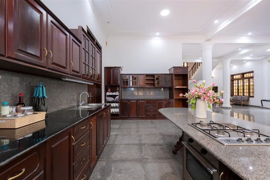 • Bếp đầy đủ dụng cụ nấu ăn, bếp gas, lò nướng BBQ, bộ xoong nồi, chén đĩa, gia vị cơ bản, phục vụ tối đa cho đoàn 30 khách