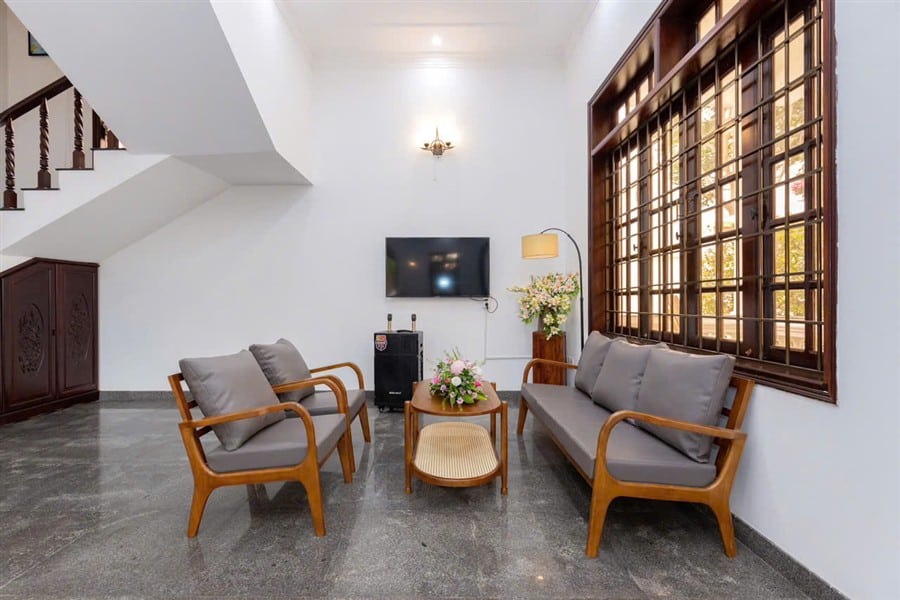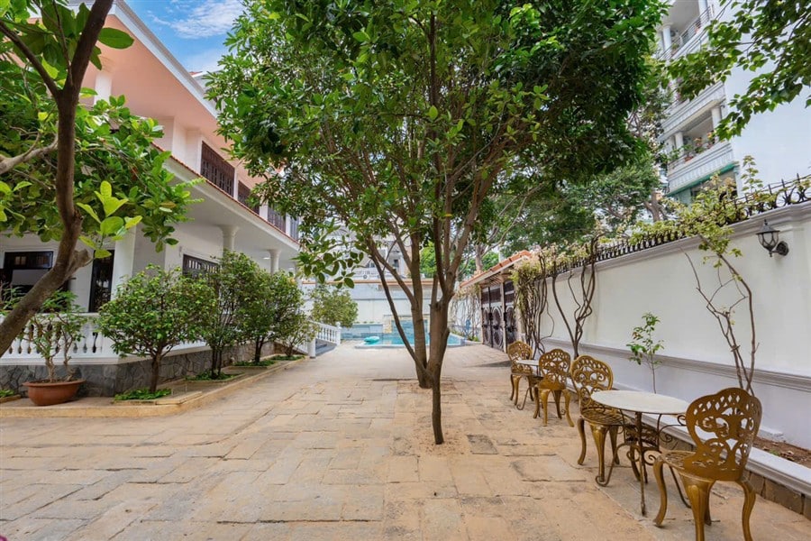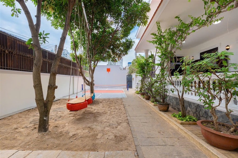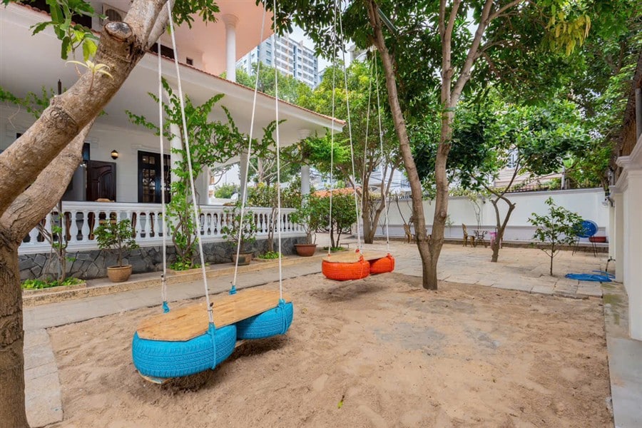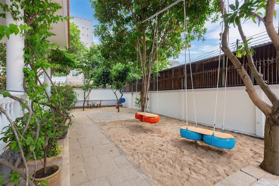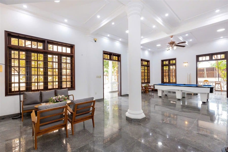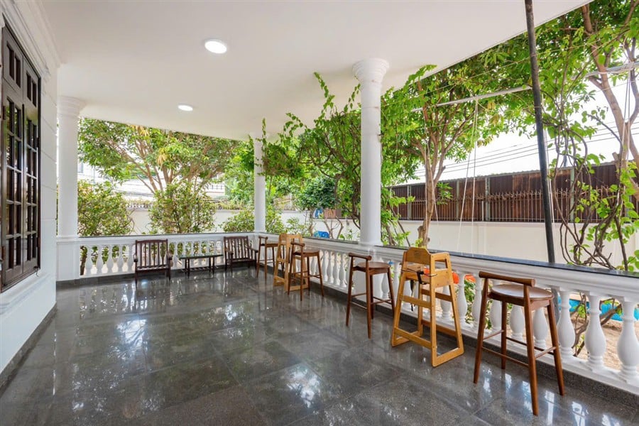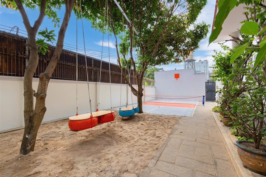 • Không gian sinh hoạt chung rộng rãi, thoáng mát, thích hợp tổ chức các hoạt động nhóm, trò chơi hoặc tiệc ngoài trời