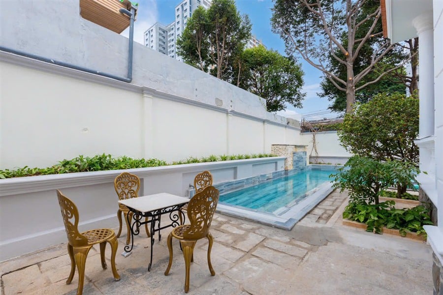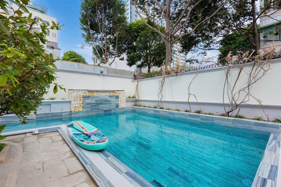 • Hồ bơi ngoài trời 60m², có khu vực riêng cho trẻ em, sục massage Jacuzzi, nước sạch và an toàn