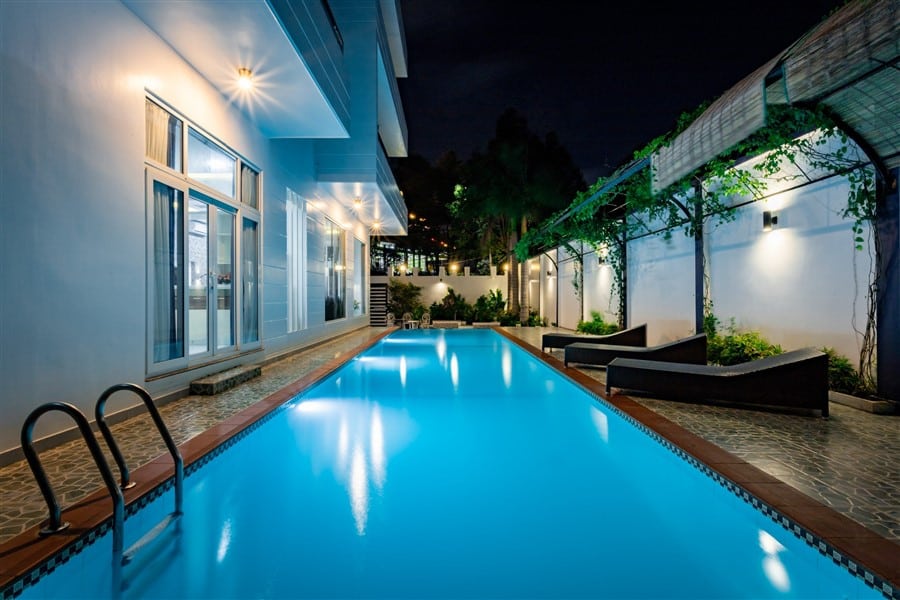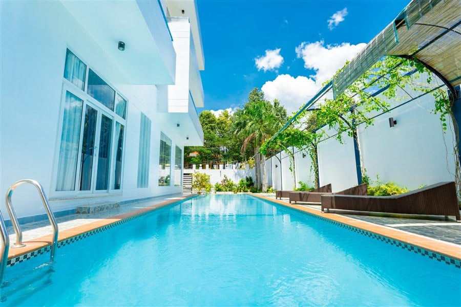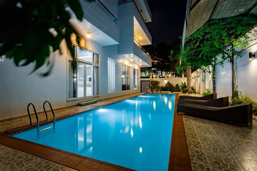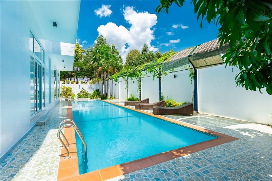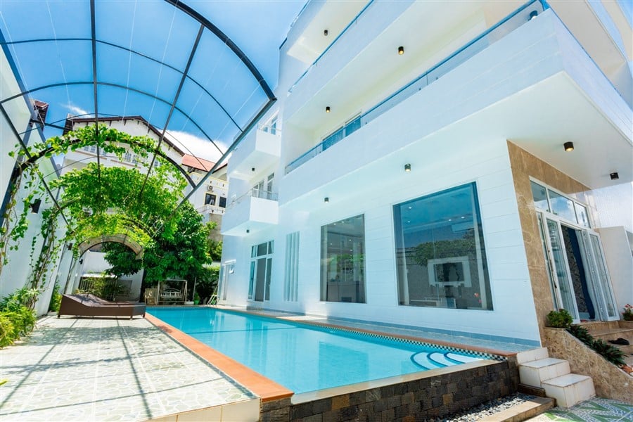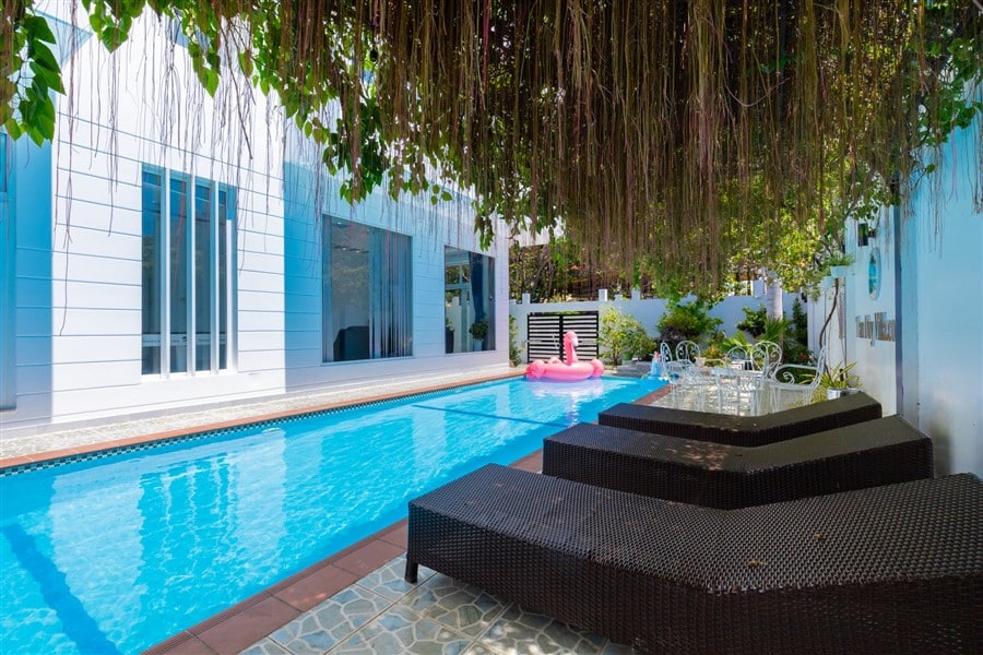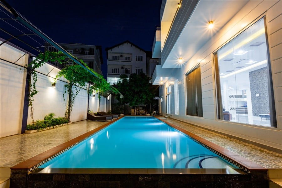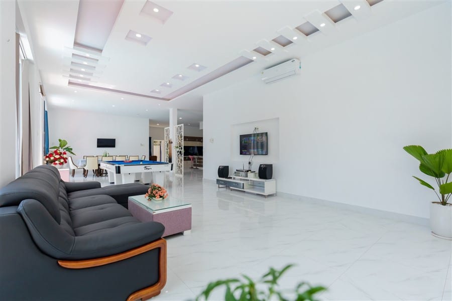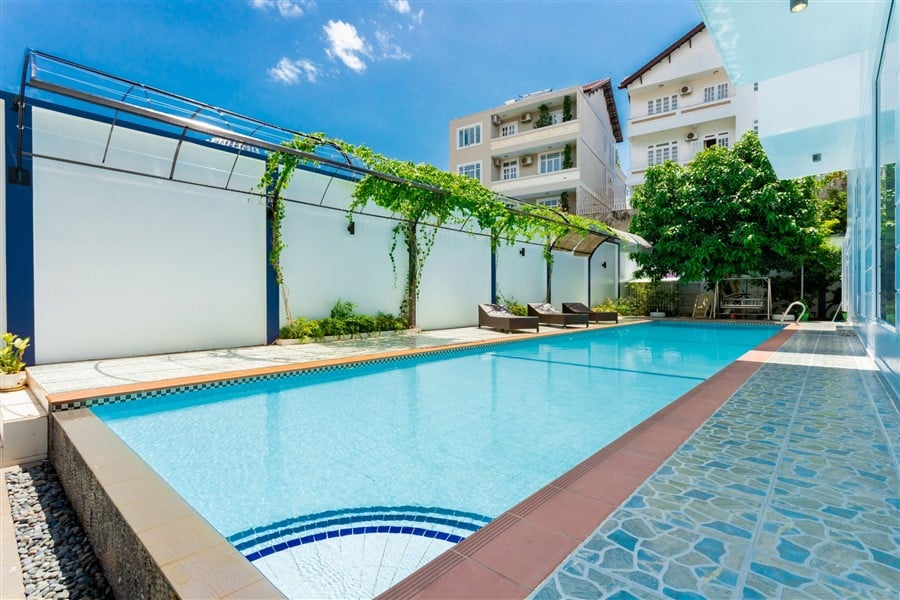 Villa này có 8 phòng ngủ và 9 nhà vệ sinh, có thể chứa tới 25 người, rất phù hợp cho các nhóm lớn hoặc gia đình đông thành viên. Villa C5 Nguyễn Cư Trinh cũng được trang bị đầy đủ tiện nghi như hồ bơi, bàn Bida, và hệ thống Karaoke, đảm bảo một kỳ nghỉ giải trí và thư giãn tuyệt vời.