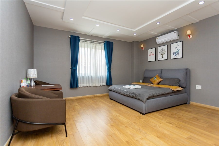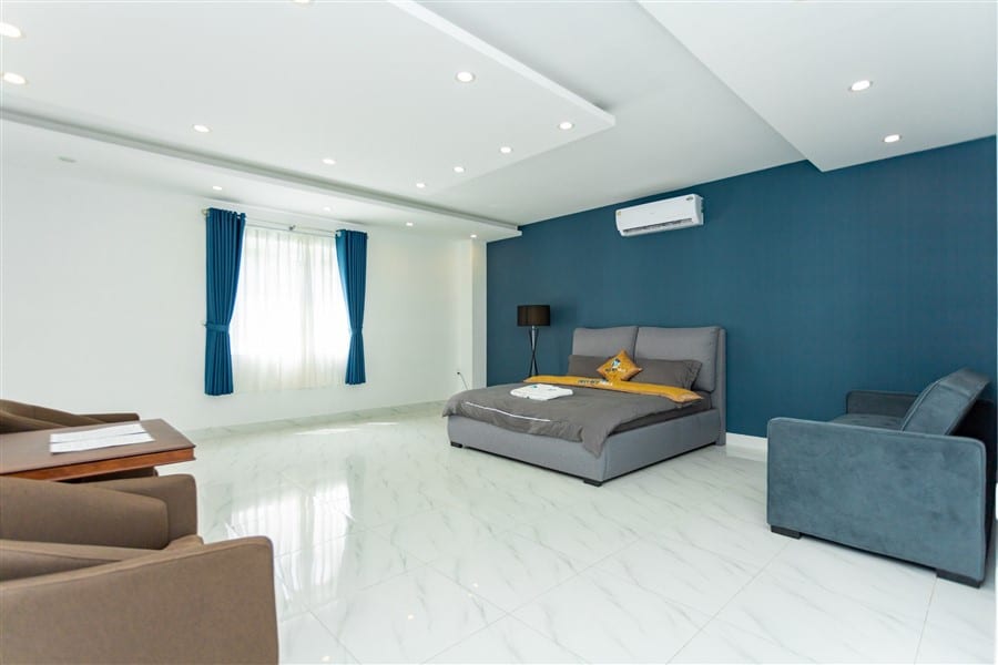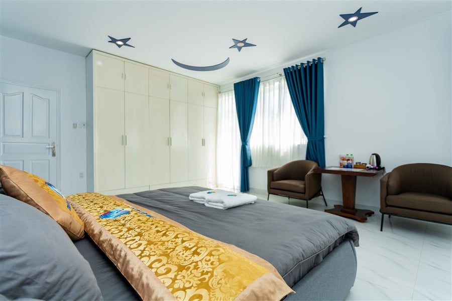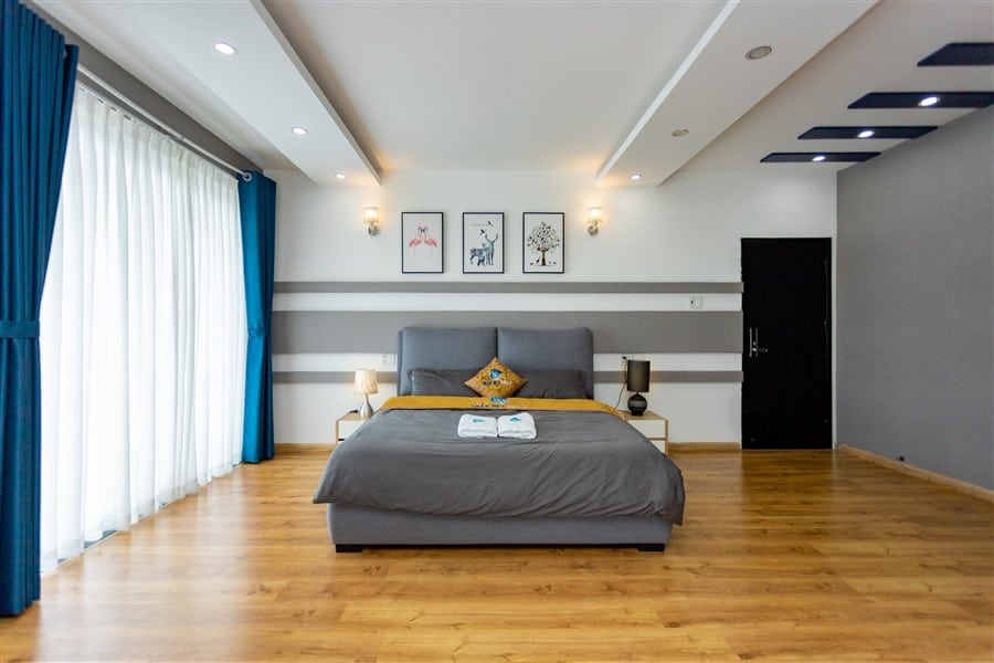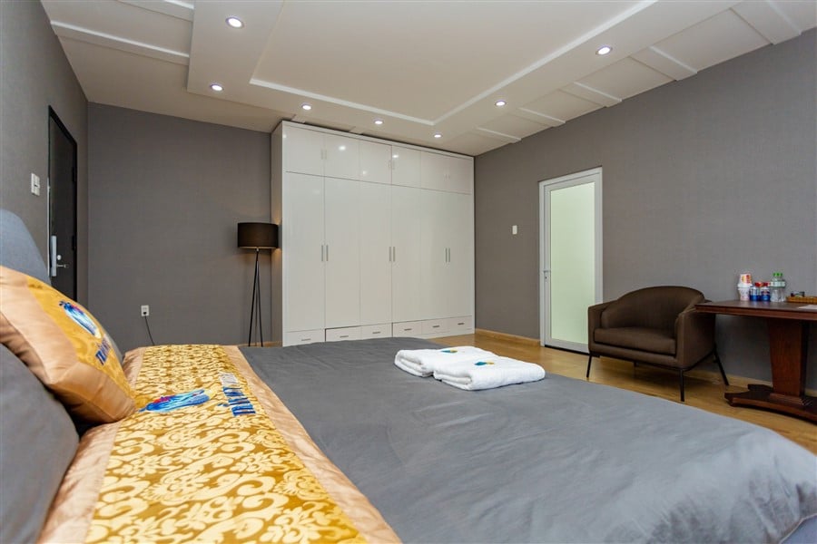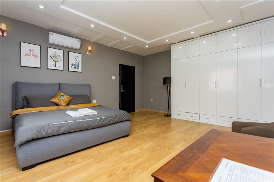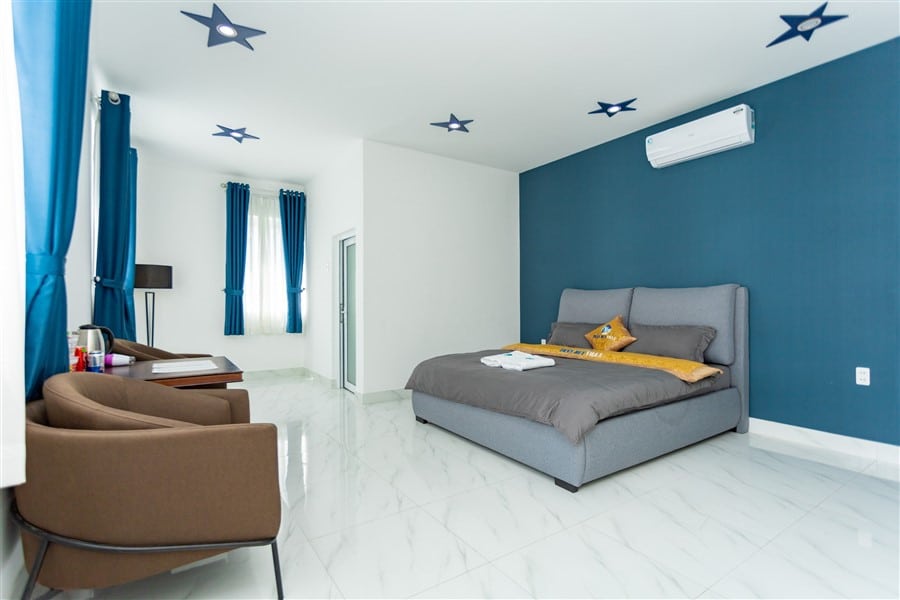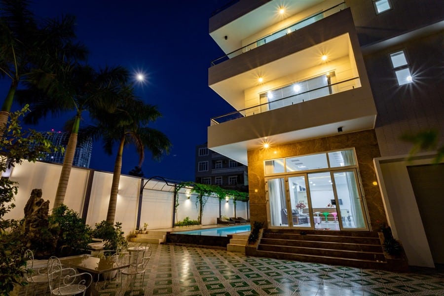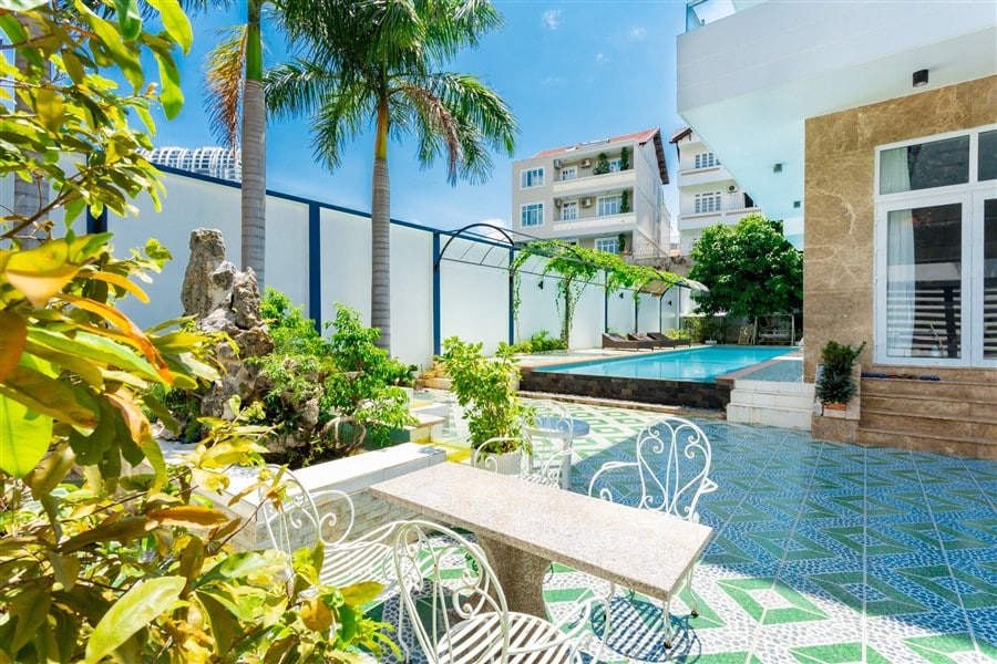 Villa này có 8 phòng ngủ và 9 nhà vệ sinh, có thể chứa tới 25 người, rất phù hợp cho các nhóm lớn hoặc gia đình đông thành viên. Villa C5 Nguyễn Cư Trinh cũng được trang bị đầy đủ tiện nghi như hồ bơi, bàn Bida, và hệ thống Karaoke, đảm bảo một kỳ nghỉ giải trí và thư giãn tuyệt vời.