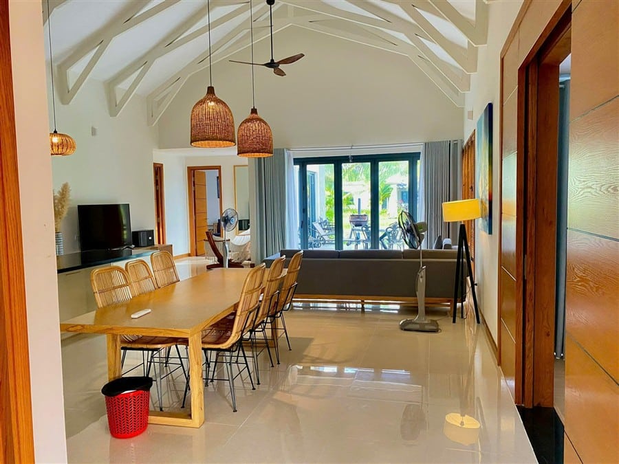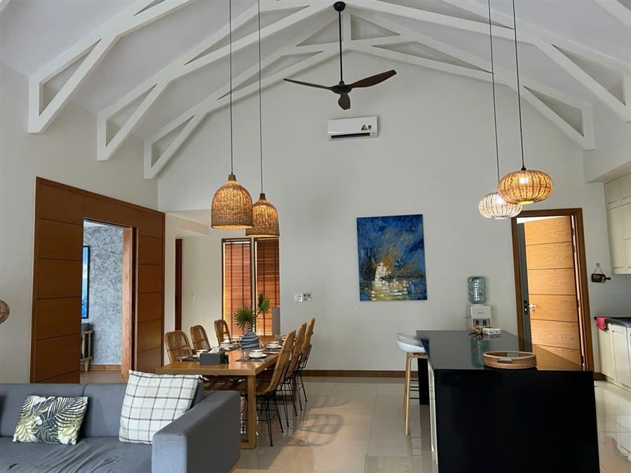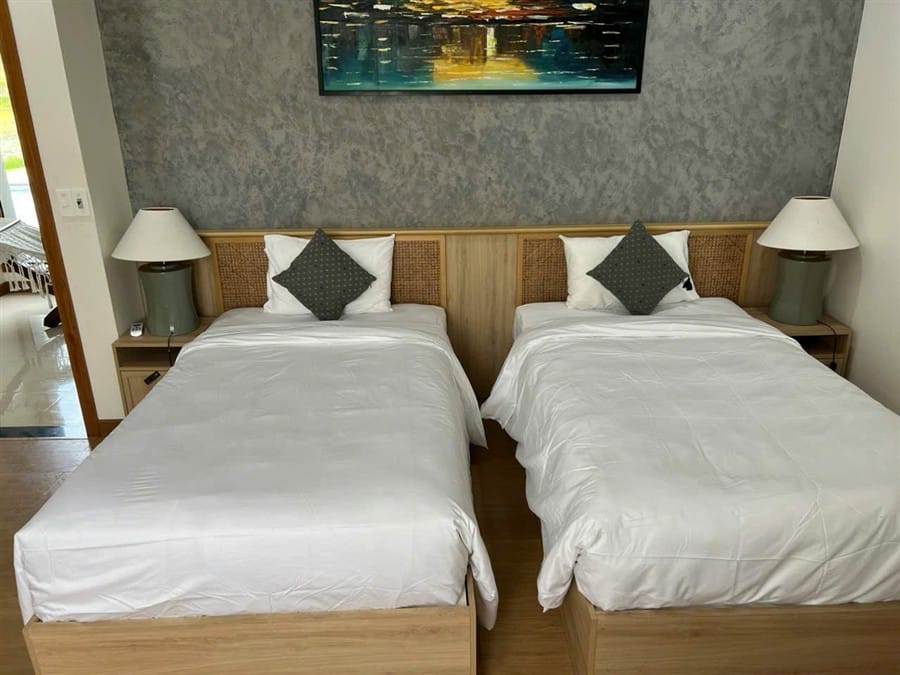 Villa được thiết kế hợp lý, không gian sinh hoạt chung rộng rãi, các phòng ngủ riêng tư, rất phù hợp cho gia đình và nhóm bạn đông người.