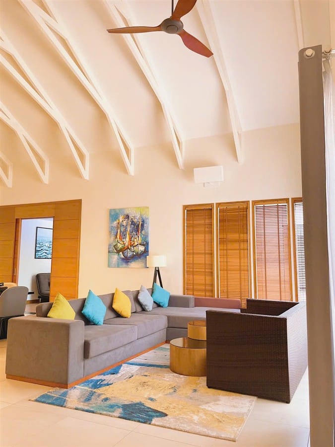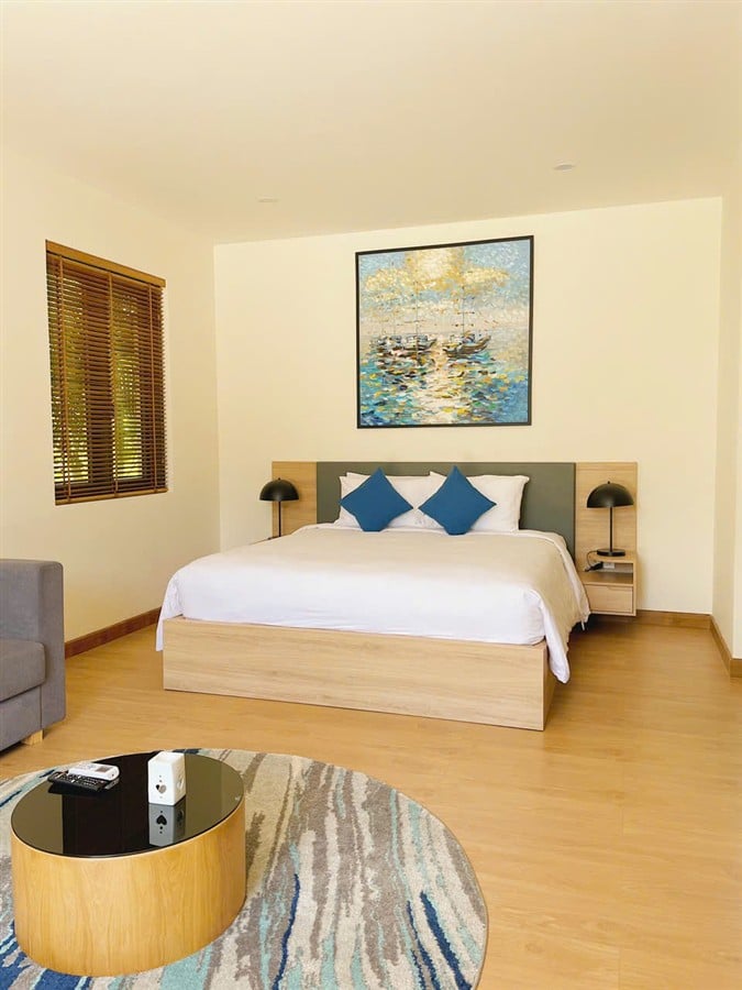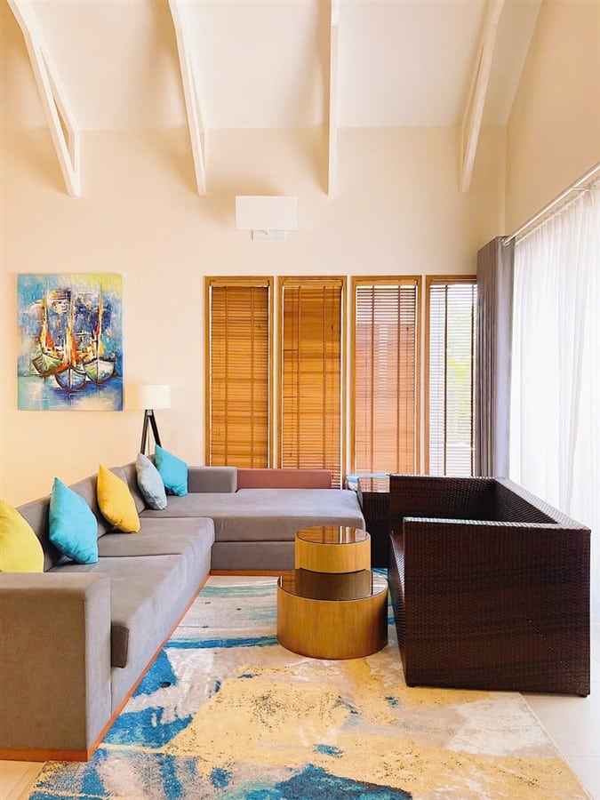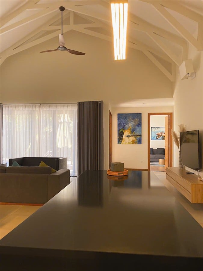 Không gian được bố trí gọn gàng, thoáng mát, phù hợp nhóm gia đình có trẻ nhỏ hoặc nhóm bạn nghỉ dưỡng cuối tuần.