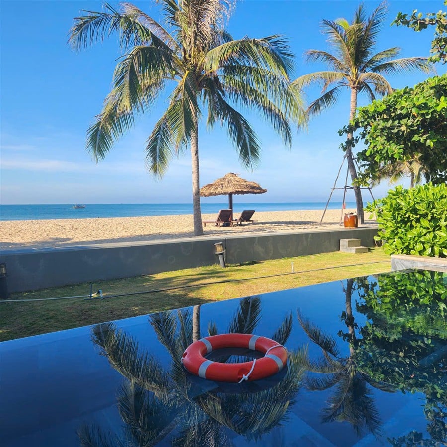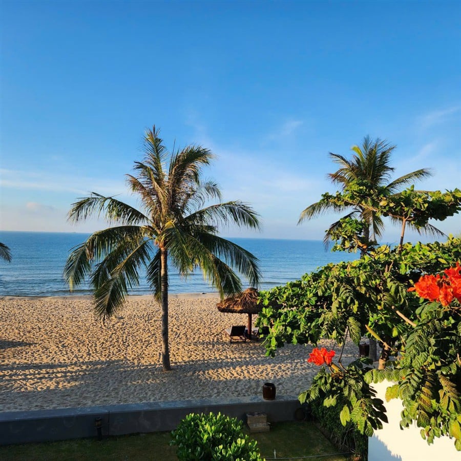 Chỉ cần vài bước chân là ra bãi biển riêng của resort, rất thuận tiện cho tắm biển sáng sớm hoặc dạo biển chiều.