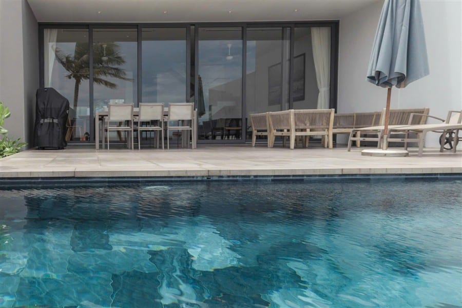 Điểm nhấn nổi bật nhất của villa Sanctuary Hồ Tràm 4 phòng ngủ sát biển chính là hồ bơi riêng view trực diện biển. Từ khu vực hồ bơi và phòng khách, bạn có thể ngắm trọn biển Hồ Tràm xanh biếc, tận hưởng không gian nghỉ dưỡng sang trọng và riêng tư.